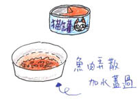 再想個辦法。用貓罐頭加水!之前在PTT上看到有板友拼命在罐頭裡加水