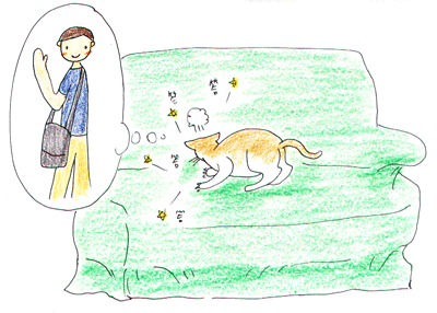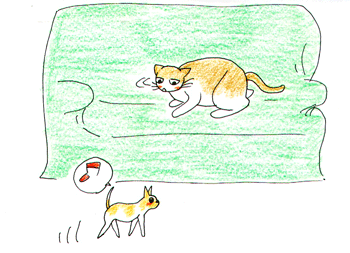 柑仔心情看樣子不太好,一下樓就去抓沙發